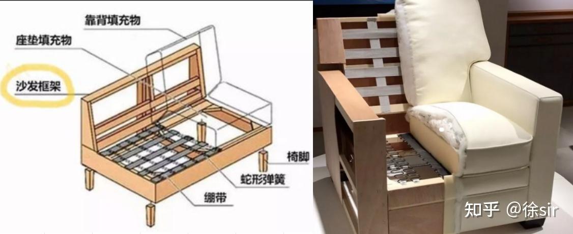 实木框架:最常见的框架种类,以松木和桉木为主,健康环保,无异味。全使用松木的话成本会很高,大多数都以松木作主框架,再搭配少许桉木。板材框架:板材有纤维板、胶合板、刨花板等人造板。价格便宜,但多用胶粘合,不环保,易潮湿和变形。且可能会甲醛超标问题,但甲醛含量符合国家E1级标准也可以选。金属框架:有钢架和铁艺两种,承重力好,不会潮湿发霉,材质好的价格要贵些。除了框架,沙发通常还会在坐垫下面使用弹性绷带网,或者在框架中间承重部位放上数根蛇形弹簧进行加固,或者绷带+弹簧+实木框架组合。绷带的价格便宜,但时间长容易走形;蛇形弹簧的成本高于绷带,寿命更长,承重性强。