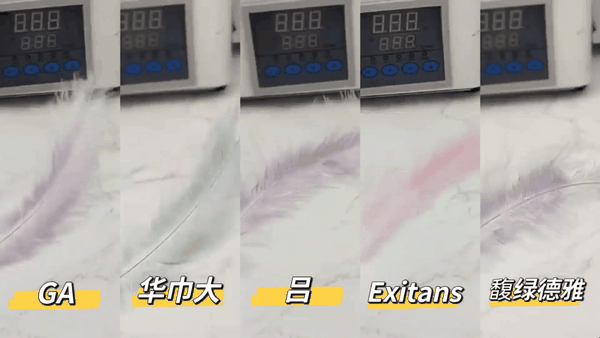 吹干后,通过观察羽毛的蓬松效果,结果如下:
