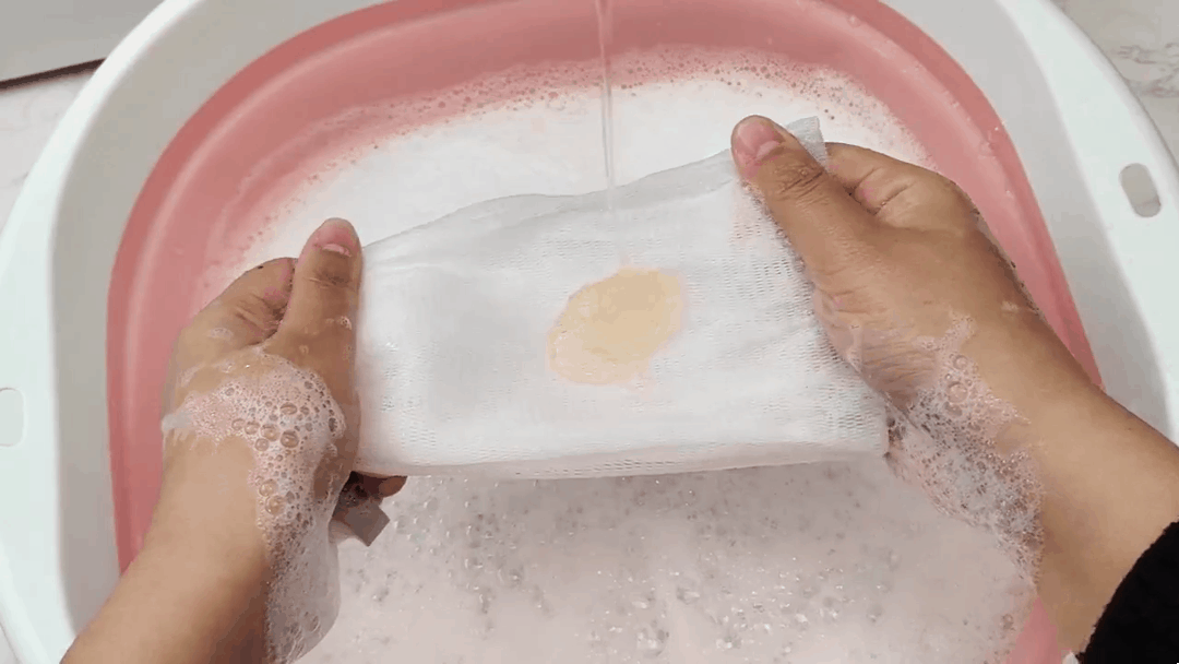 取适量泡沫放入起泡网中,并加水进行揉搓几次,观察起泡程度和泡沫质量。