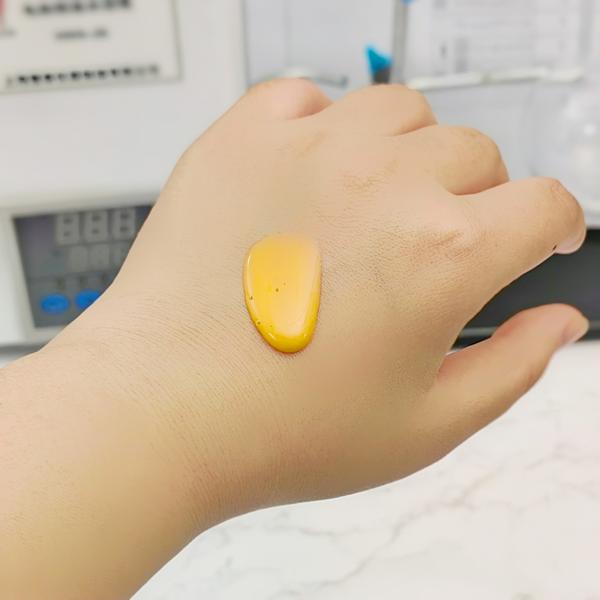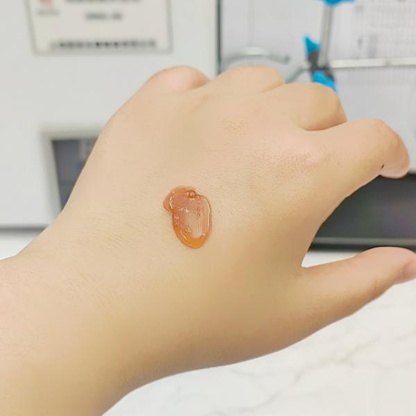 质地是棕褐色的凝胶质地,因为比较粘稠,所以流动性一般,但里面有肉眼可见的精华小颗粒,没查到这个小颗粒是啥,知道的可以在评论区科普下,