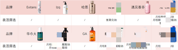根据起泡结果显示,lzq、华巾大、哈恩的泡沫最为细腻,质量较好;遇见香芬、GA、Exitans、馥绿德雅紧随其后,泡沫相对较大的是kono和薇姿。