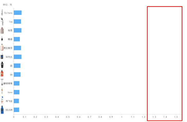 别着急,为了让你们看的更加明显,我把12款产品的沉淀物重量进行了统计,做成图表↓