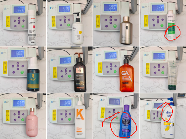 在这次测试的12款洗发水中,Exitans、lzq、哈恩、吕、遇见香芬、华巾大、GA洗发水的pH值,均符合化妆品的标准要求,可以正常用,没有刺激性,馥LD雅稍微有点过。