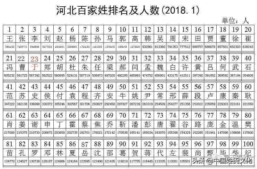 河北省姓氏排名前100位是什么 河北“百家姓”排名