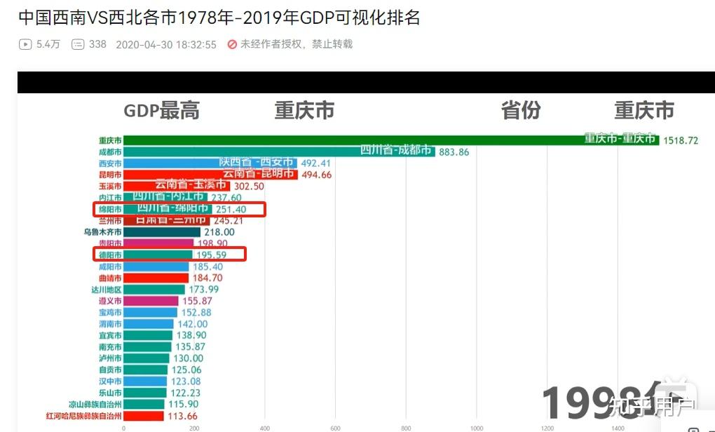 比如德阳市就是从绵阳专区拆出来的年轻地级市,如果二者合算,从78-98年的德阳+绵阳的GDP其实并不逊色于同期的西北第一大都会西安。反而是2000年后两市没有形成优势集群,才光速被成都甩到影子都看不到。这几年与其说是成都发挥了带动猪队友的作用,不如说是衰落的一塌糊涂的四川地级市的一次小小的回春而已,因此四川网友也没必要盲目乐观自信。毕竟老四川以前有放眼整个中西部都算王炸级别的地级市经济,现在好不容易复苏一点就一脸得意。