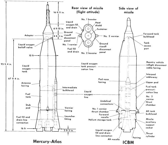 水星-阿特拉斯火箭和阿特拉斯导弹剖面图(NASA)