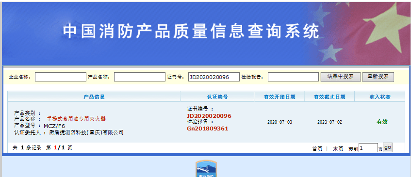 综上所述:F类火灾是一类较为特殊的液体火灾,与汽油等常见的易燃液体火灾的扑救有较大不同,宜使用专门的F类灭火器或者食用油火灾灭火器,推荐使用灭火器应具备皂化反应为主要灭火机制的液体灭火剂。厨盾捷消防科技(重庆)有限公司经过3年的潜心研究,于2020年推出MCZ/F6食用油专用灭火器。该产品取得了中国消防产品质量认证(证书编号:JD2020020096)。同时该产品有效期长达6年。该公司联合PICC人保为产品购买了产品责任险,保证质量。该产品属于高效环保的食用油火灾灭火器,使其同时具备灭火效率高、灭火时无飞溅、灭火后不易复燃、对人和环境无显著毒性危害、不会污染厨房内的其他食品及器具、火灾后现场易于清理等特点,其中,提高泡沫稳定性、降低灭火剂毒性应是主要目标。填补国内F类火灾产品空白,保障中国商用厨房、机关、单位、学校等厨房安全健康发展。