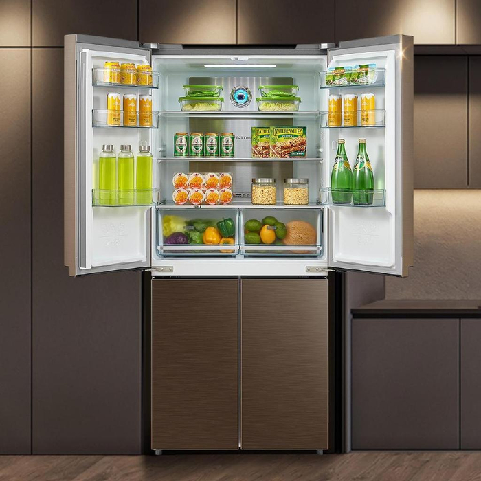 十字对开门冰箱的容量相对比较大,通常都有400-600L左右,容量够大,非常适合家庭人口比较多,喜欢囤货的家庭使用。