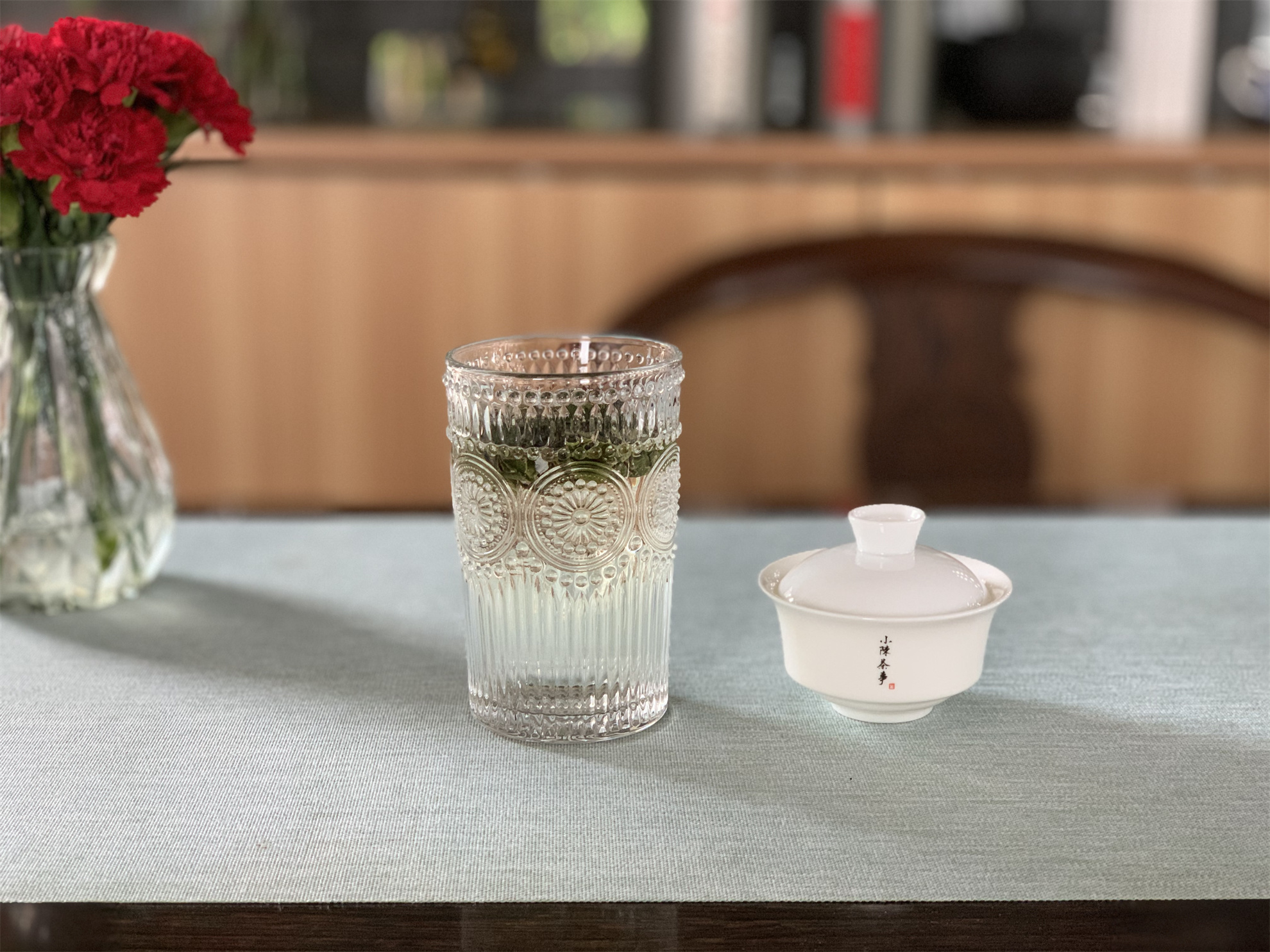 此时,换上一个容量稍大的玻璃杯,简单泡杯清润鲜香的当年春茶也很不错。