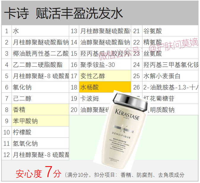 但卡诗的特色是里面加了去角质成分--水杨酸。 这个成分我们不陌生,能加速表皮细胞的脱落,让皮肤看起来白一点亮一点,让肤色更加均匀,可能对一些粉刺和痘痘也有一定抑制作用。