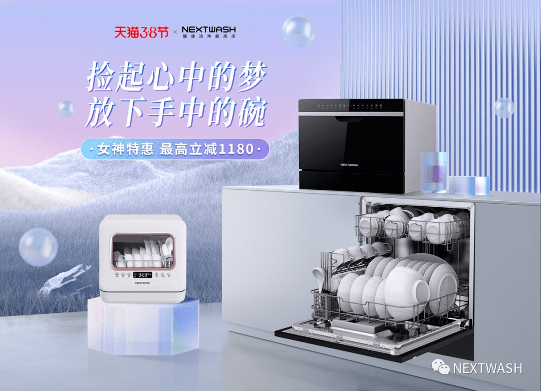 38女神节送自己,送妈妈,送妻子首选礼物,一起放下手中的碗,捡起心中的梦,NEXTWASH家用全自动洗碗机女神特惠最高立减1180元哦!