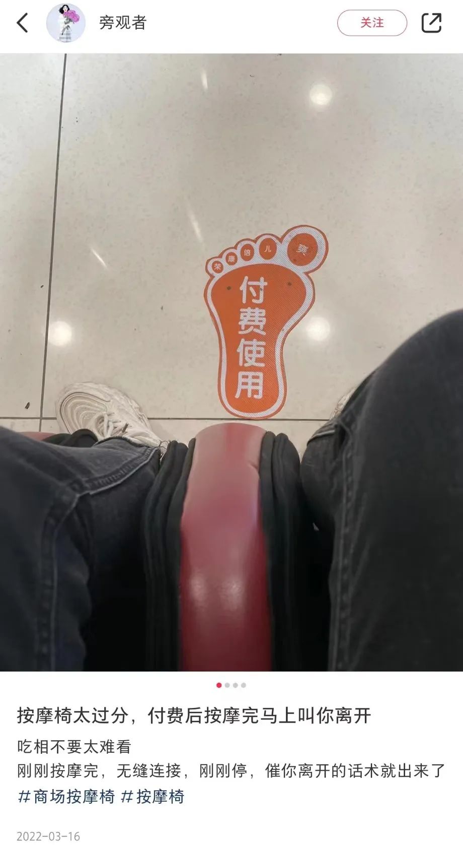 共享按摩椅,付费后催用户离开。(图/小红书)