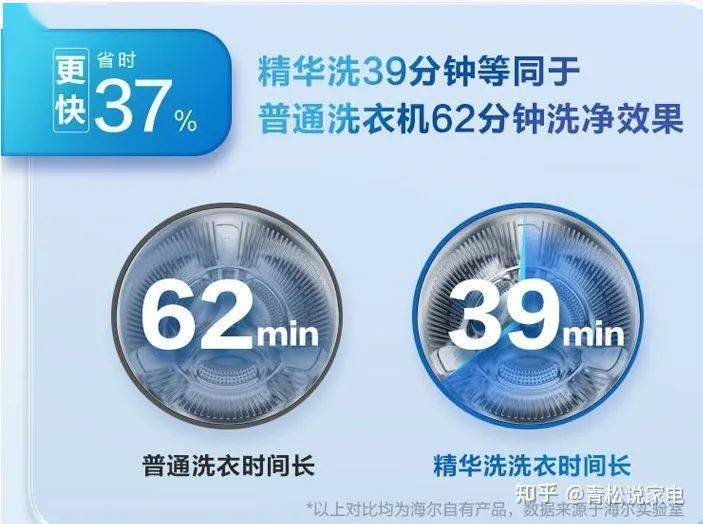 普通滚筒洗衣机,洗一次衣物约需在1小时左右,而精华洗洗衣机只需39分钟,这洗涤时间跟波轮洗衣机差不多,速度更快用时更少,衣服洗涤时间更少也更护衣物,相应也能省下更多电量。