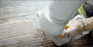 吓得鹅妹赶紧盖上盖子,结果它开始自己在地板上移动了起来,边动还边往外洒水。
