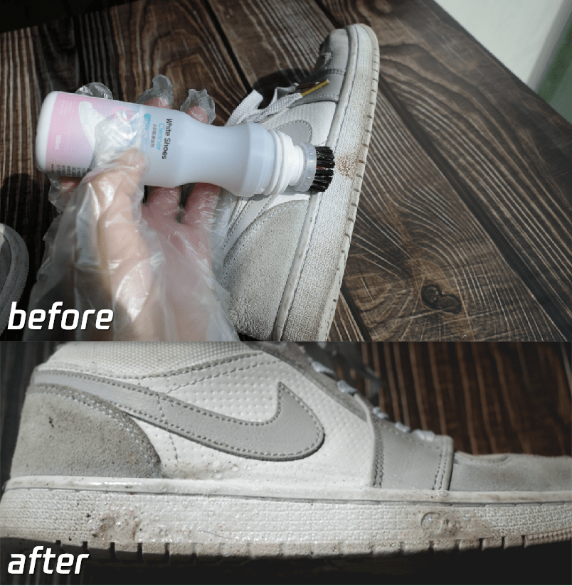 20分钟过后,神奇的一幕发生了,鞋子变干净也变白了!
