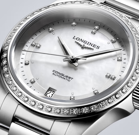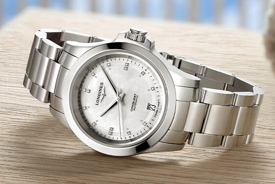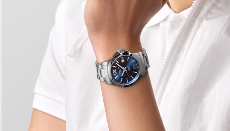 浪琴康卡斯系列悦动这个系列还有对应的女士手表款式,可以作为情侣表款。表盘直径34mm,防水深度100米。
