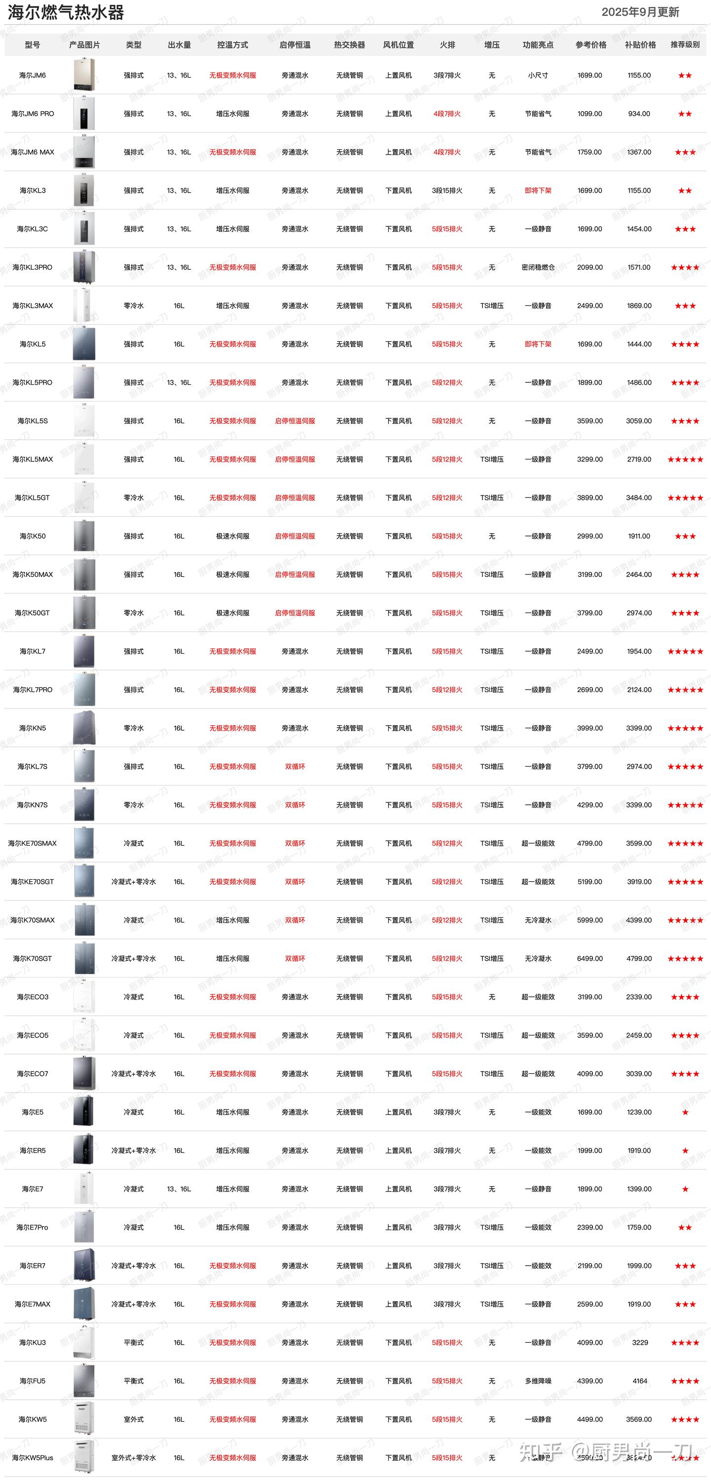 二、海尔燃气热水器选购建议ok,以上就是海尔燃气热水器全部主流型号盘点,一共9个系列,37款型号,我知道你们的CPU都快干烧了。