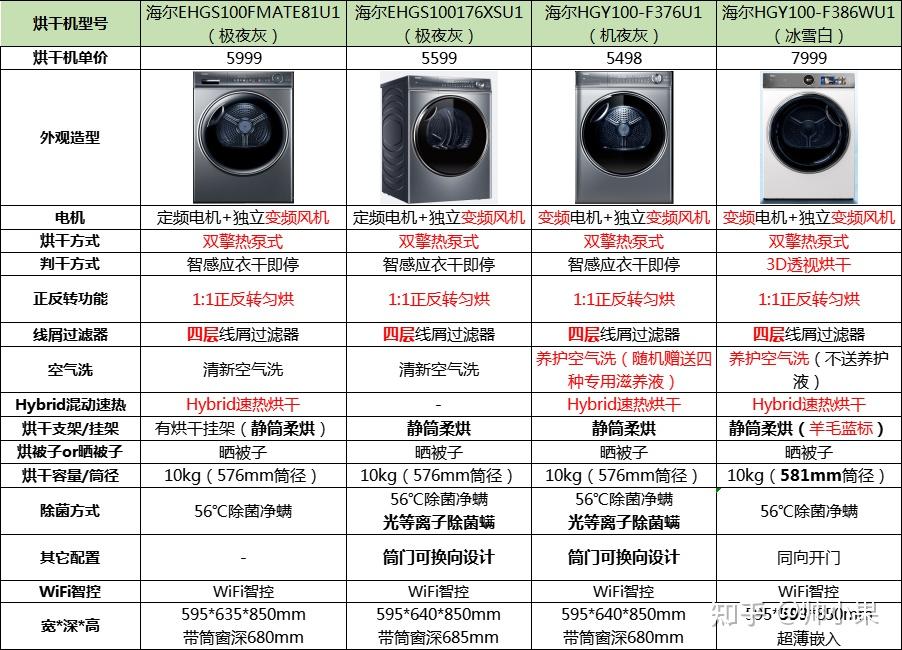 本文所选型号烘干容量均为主流的10kg,以下海尔烘干机按价格从低到高排序,有需求的用户可以根据自己预算范围跳转到相关章节。