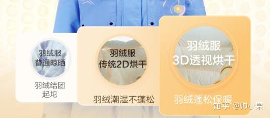 (3)空气洗:有水空气洗 VS 无水空气洗空气洗属于热泵烘干机或者洗烘一体机的干衣物护理功能,适合不能水洗、不敢干洗的衣物,有祛异味(霉味/火锅味/烟酒味等)、除尘,甚至是塑形护色等作用。根据功能差异,又可以分为有水空气洗和无水空气洗。