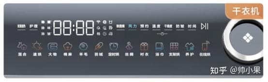 MATE59烘干机采用晶彩触控屏设计,一体化颜值更高,无旋钮(有旋钮实用性更强,这种比较主观,看个人喜好来定吧);