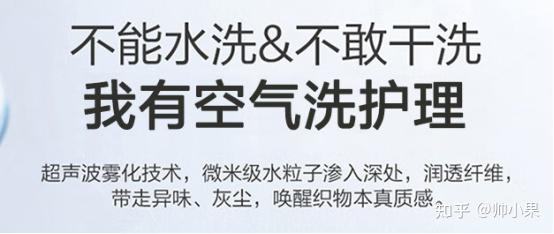 有水空气洗:有水蒸气参与,属于进阶功能,能润透纤维,除皱、除味、塑形效果更好,在详情页标注“超声波雾化空气洗”或者有“超声波”、“微蒸汽”等关键字眼的就是属于有水空气洗,其中养护空气洗又是超声波空气洗的特殊版本(遇到型号时会细说);