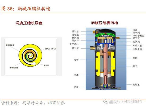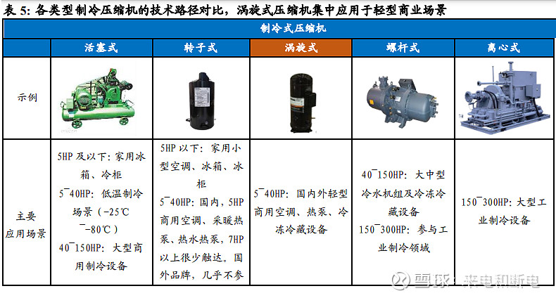 (4)氟机的涡旋,5匹以上户用中央空调、小型办公使用,美国+日韩品牌居多;