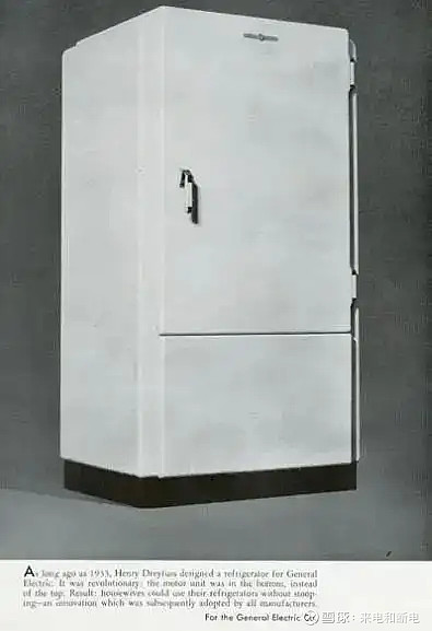 当时的家电都像家具一样有四条腿,后来通用电气的设计师德雷夫斯,在1933年设计的“新型平顶豪华冰箱”时,去掉了4个脚,并把冷凝器放在电冰箱后面,形成了现代的电冰箱样式。