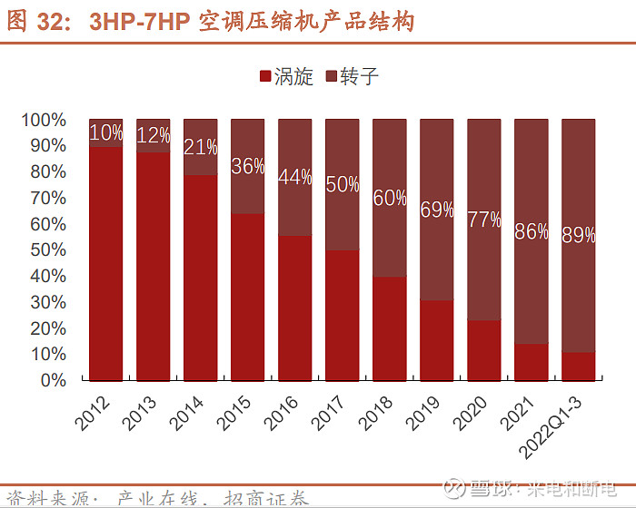 以3~7HP为例,2012年时只有10%是转子,现在90%是转子!