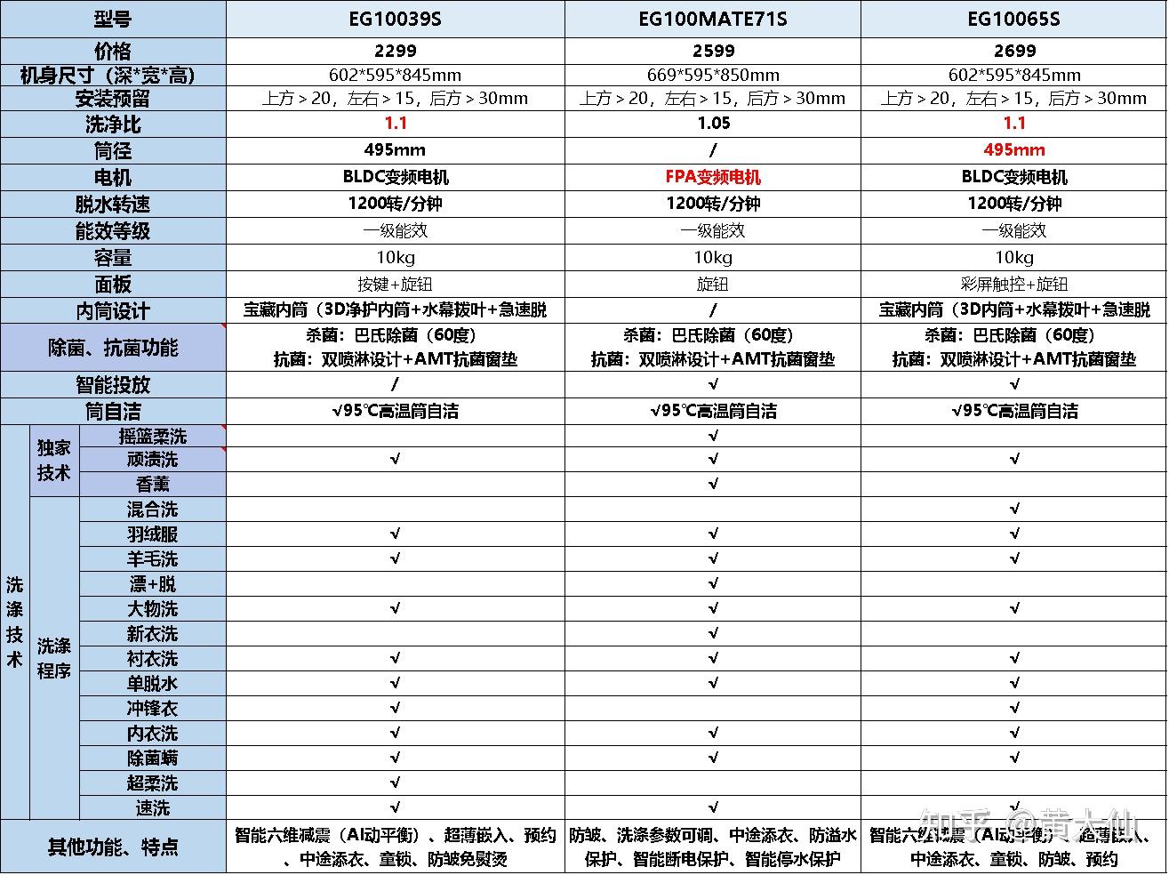 小结:性价比最高+清洁能力强的选EG10039S,对清洁能力要求不是特别高+搭载独家技术更丰富的选EG100MATE71S,清洁能力强+智能化程度高的选EG10065S。