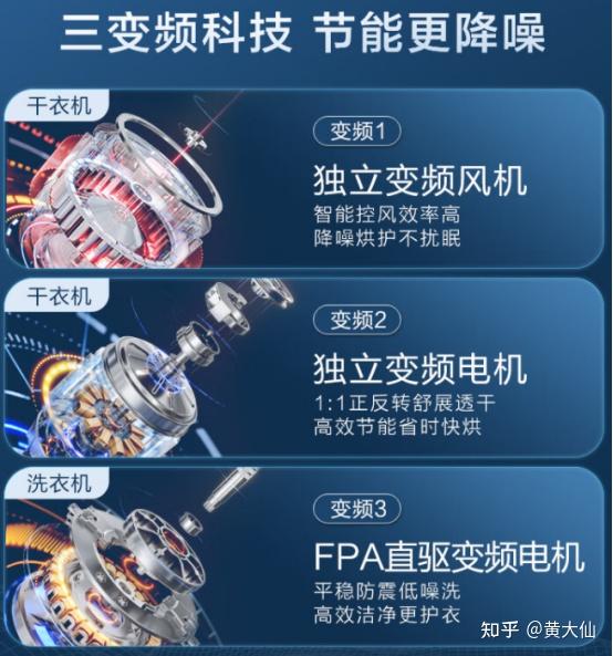 (3)电机关于洗衣机和烘干机的电机,分为定频和变频,变频电机的使用效果更好且噪音更小。
