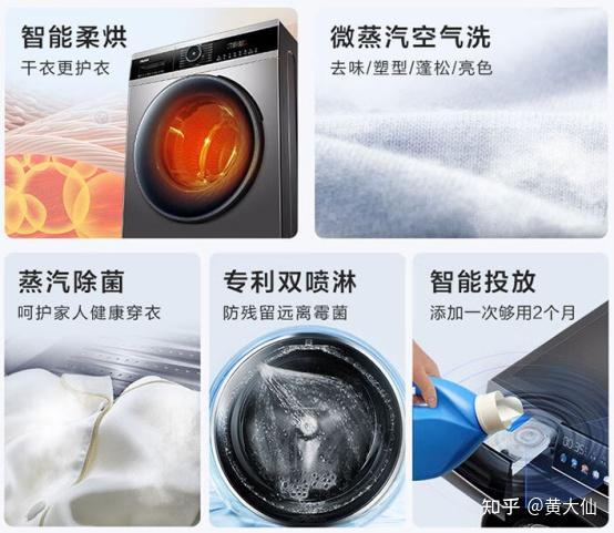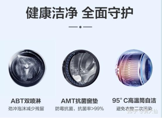 而且除菌、抗菌功能上同样搭载巴氏除菌+双喷淋设计+AMT抗菌窗垫,支持智能投放洗涤剂+95℃高温筒自洁,没啥好说的。