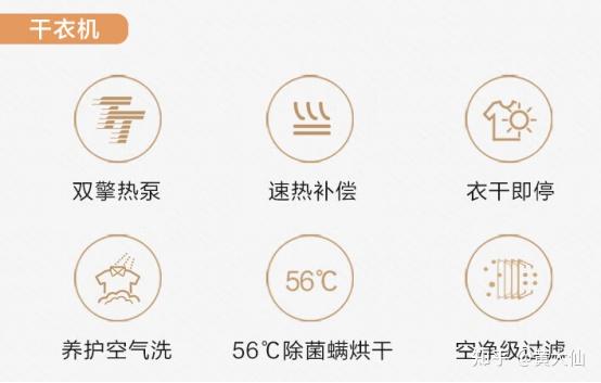 另外还同样搭载无极变速风、速热补偿系统、空净级四重线屑过滤、智能柔烘、衣干即停、筒门可换向设计、童锁等功能。