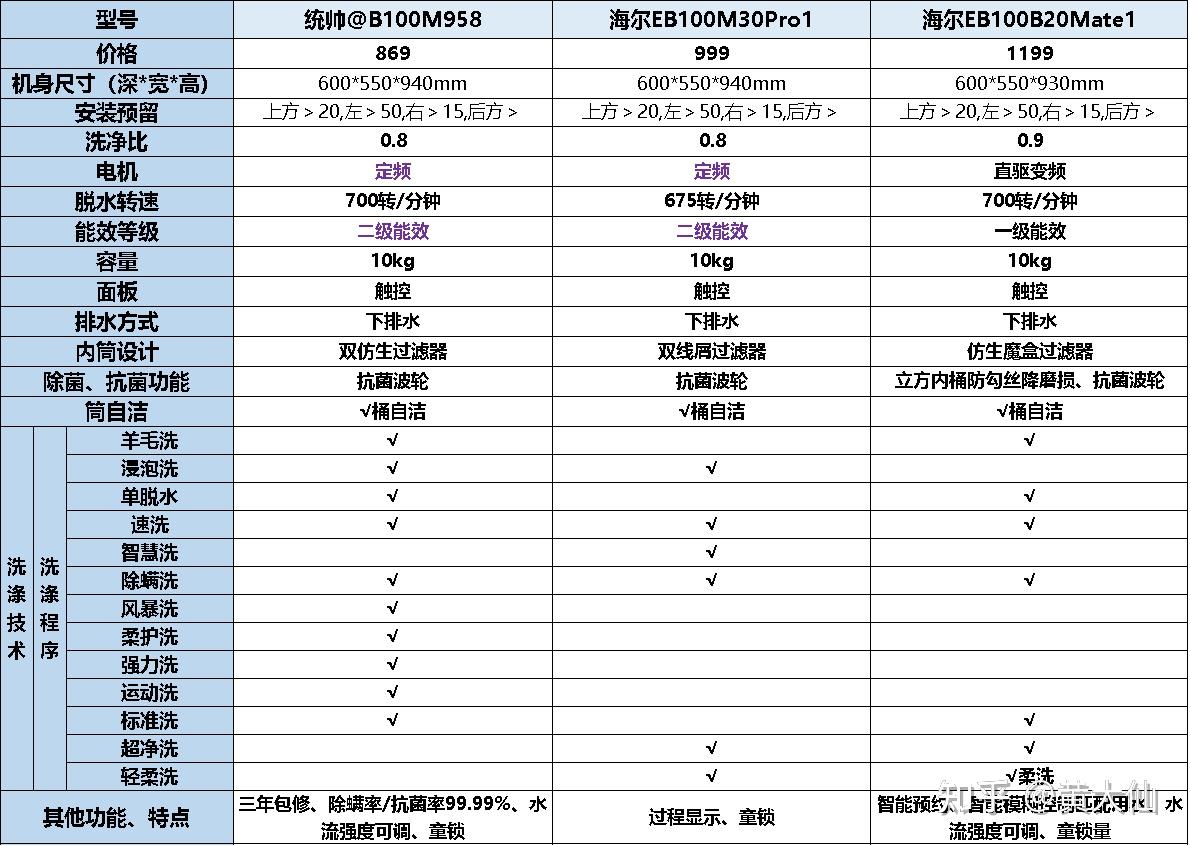 小结:海尔波轮洗衣机最推荐海尔EB100B20Mate1,预算实在不足时才考虑统帅@B100M958、海尔EB100M30Pro1来满足最最基本的洗涤需求。