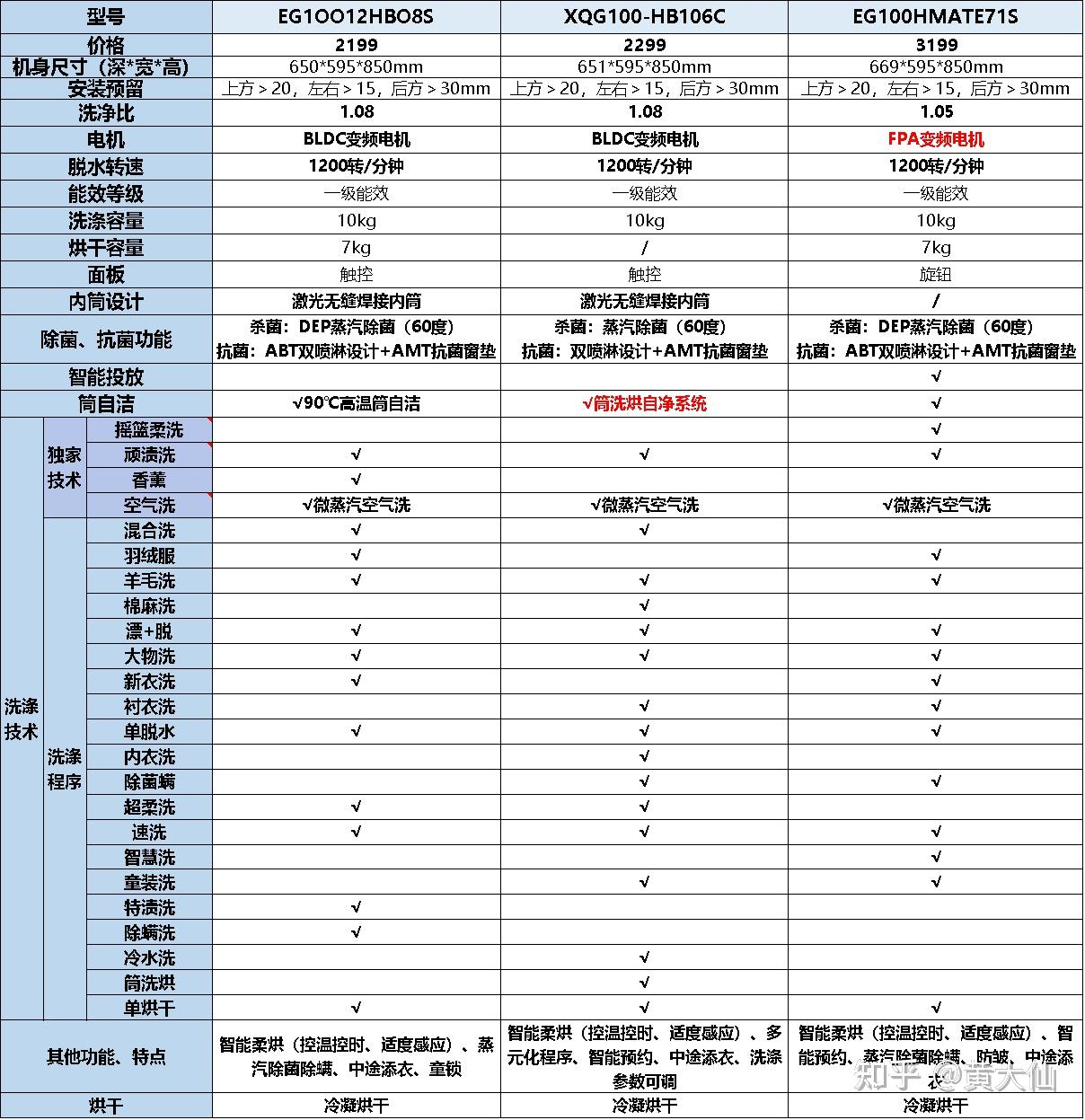 小结:洗烘效果最好的海尔洗烘一体机选EG100HMATE71S,但价格稍贵;预算有限时选EG1OO12HBO8S、XQG100-HB106C。