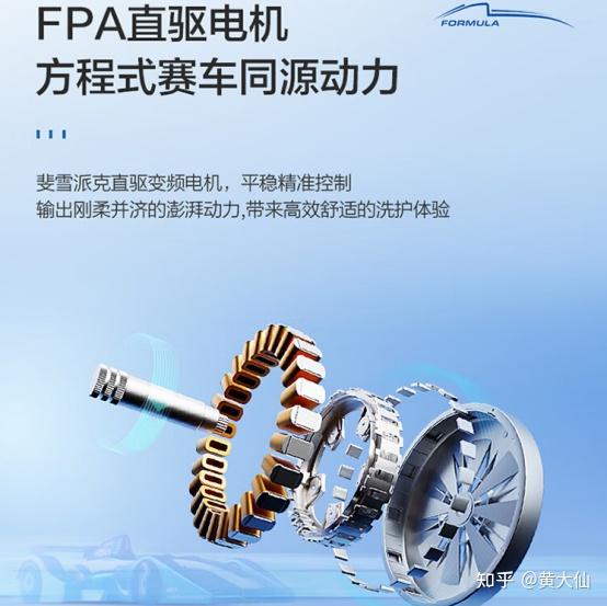 海尔的高端洗衣机系列采用了FPA直驱电机技术,相较于传统皮带驱动系统,直驱电机直接连接滚筒,传动效率更高、噪音更低,并且能实现更精确的洗涤节奏和力度控制。