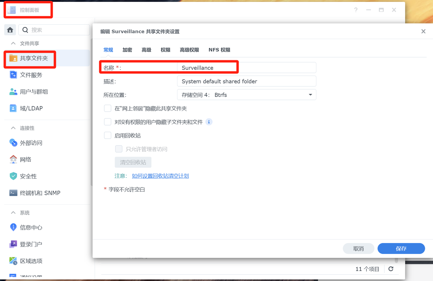 1、硬件准备需要一个和多个支持ONVIF协议的摄像头且将这些摄像头和群晖NAS接入到局域网的同一个网段2、创建监控文件保存的【共享文件夹】控制面板 → 共享文件夹 → 新增