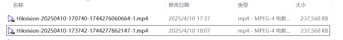 串流1,4K录制,H265+,Surveillance Station按30min一个文件进行存储,大约每个文件在238MB
