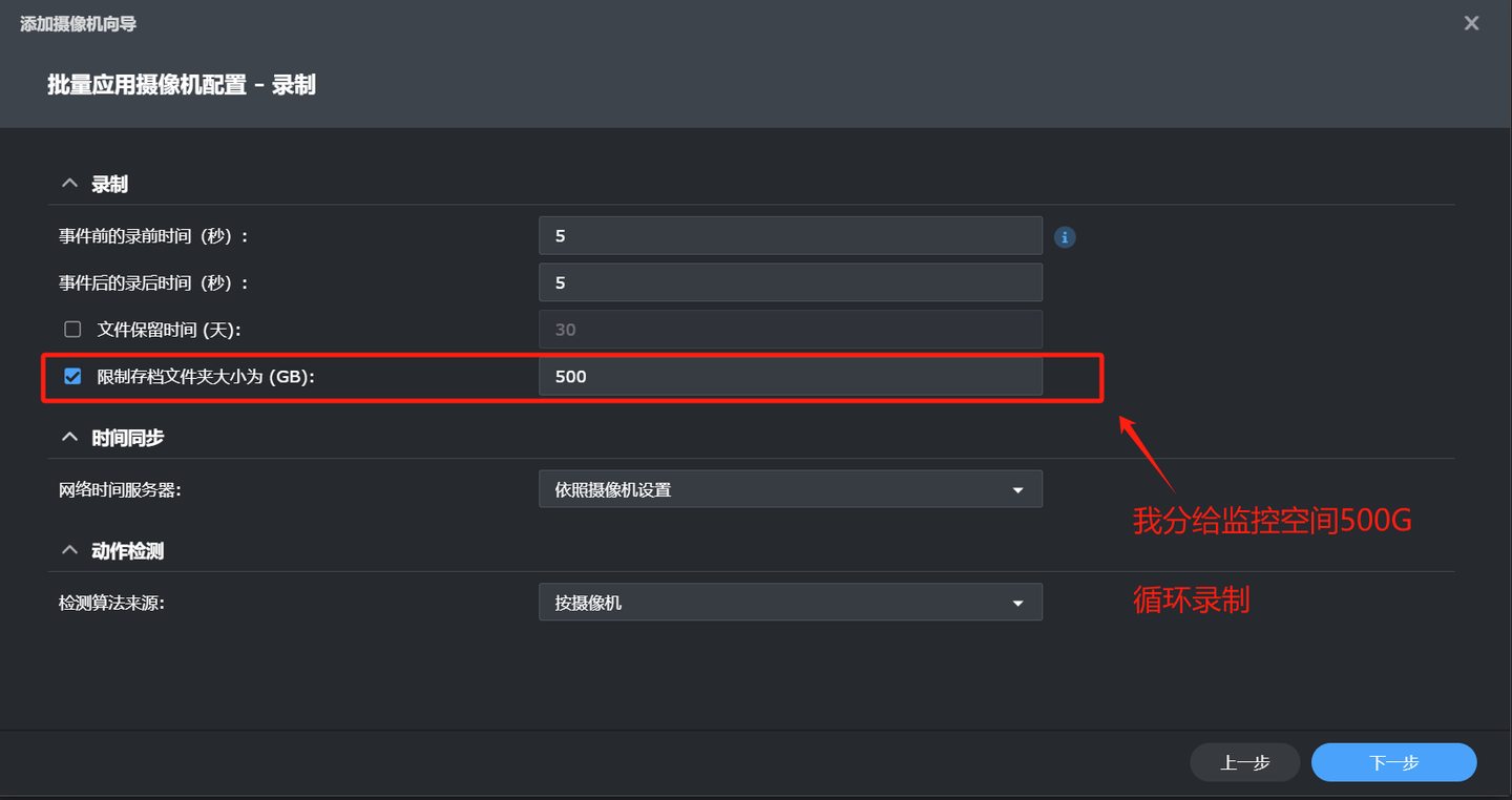 可以按保存天数设置可以按文件夹最大存储空间设置