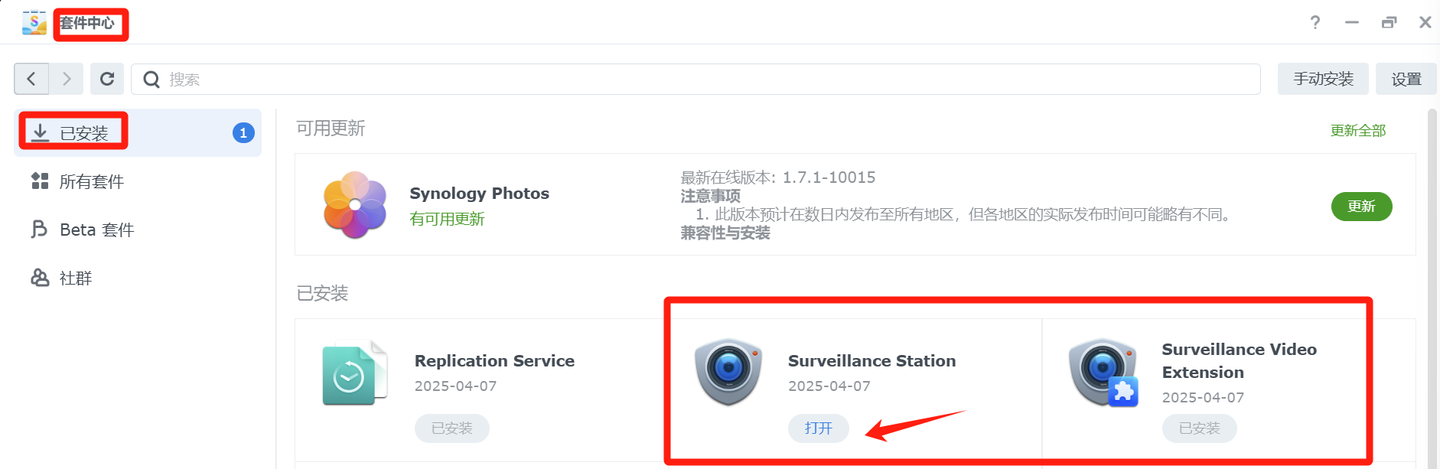 3、安装群晖Surveillance Station套件