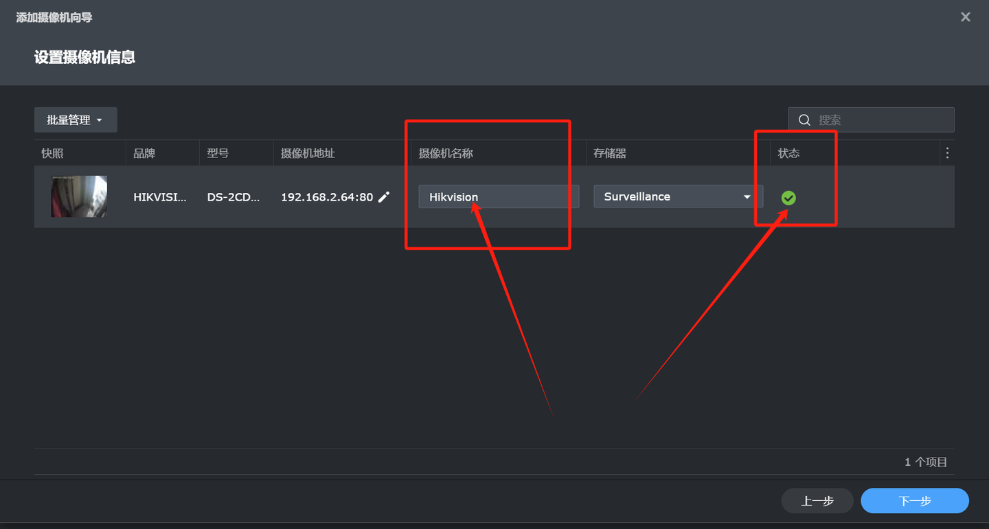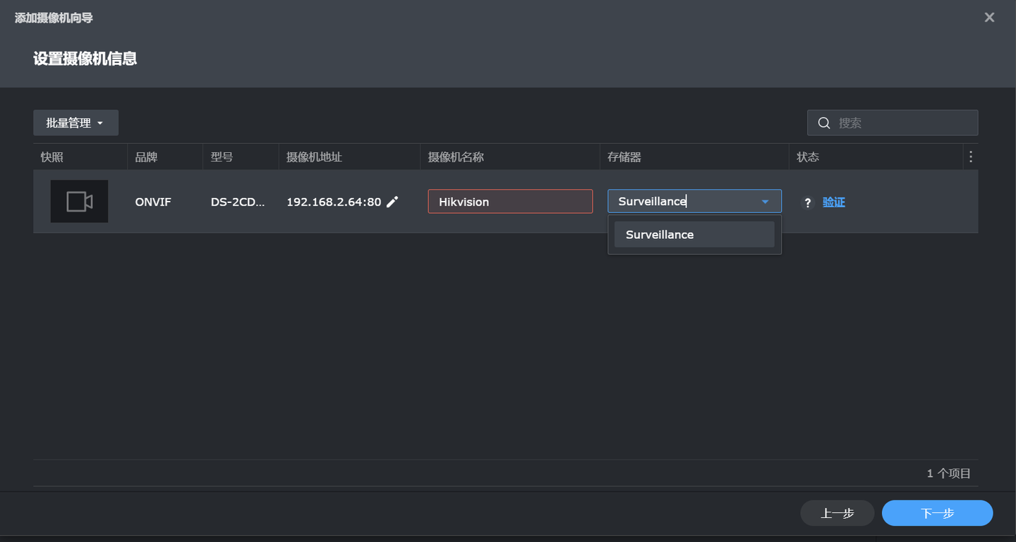 命名一下【摄像机名称】,选择【存储器】,即开始设置的共享文件夹Surveillance