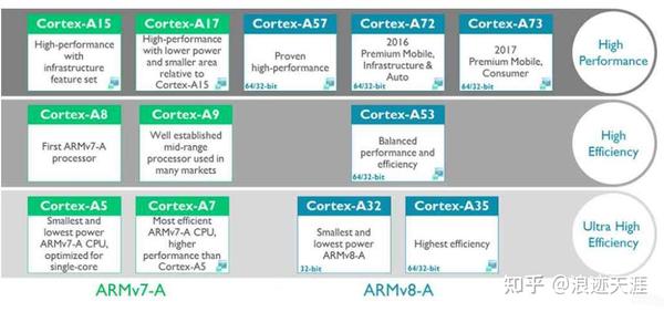先给大家科普一下,CPU是什么?CPU为中央处理器,它是一块超大规模的集成电路,是一台设备的运算核心和控制核心。它的功能主要是解释指令以及处理数据。简单来说,它就像是人类的大脑一样,我们对电视盒子发出的指令都需要通过CPU进行分析处理。CPU大部分为ARM架构,下面给大家放上一张图来看ARM架构的性能天梯图。