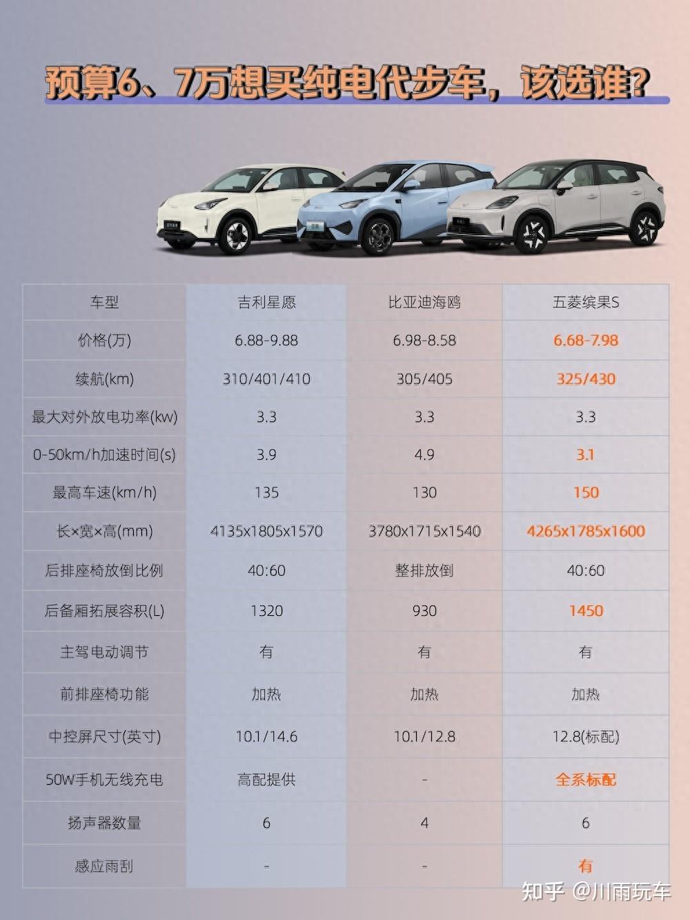 你觉得6、7万能买到的纯电小车,能提多少要求?乘坐与储物、续航与补能,还有智能与舒适,这些看上去两两匹配的属性,往往都需要作取舍。那么,有没有可能就这样的预算就挑到什么都有的好车?今天咱们要看的这三款热门纯电车,或许就能做到让人处处都满意: