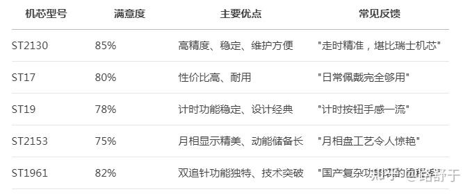 表:海鸥主流机芯用户满意度(2025年抽样数据)