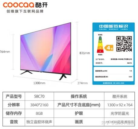 酷开 创维出品 C70 58英寸智能平板电视机:参考价格:1699酷开C70 防蓝光护眼电视