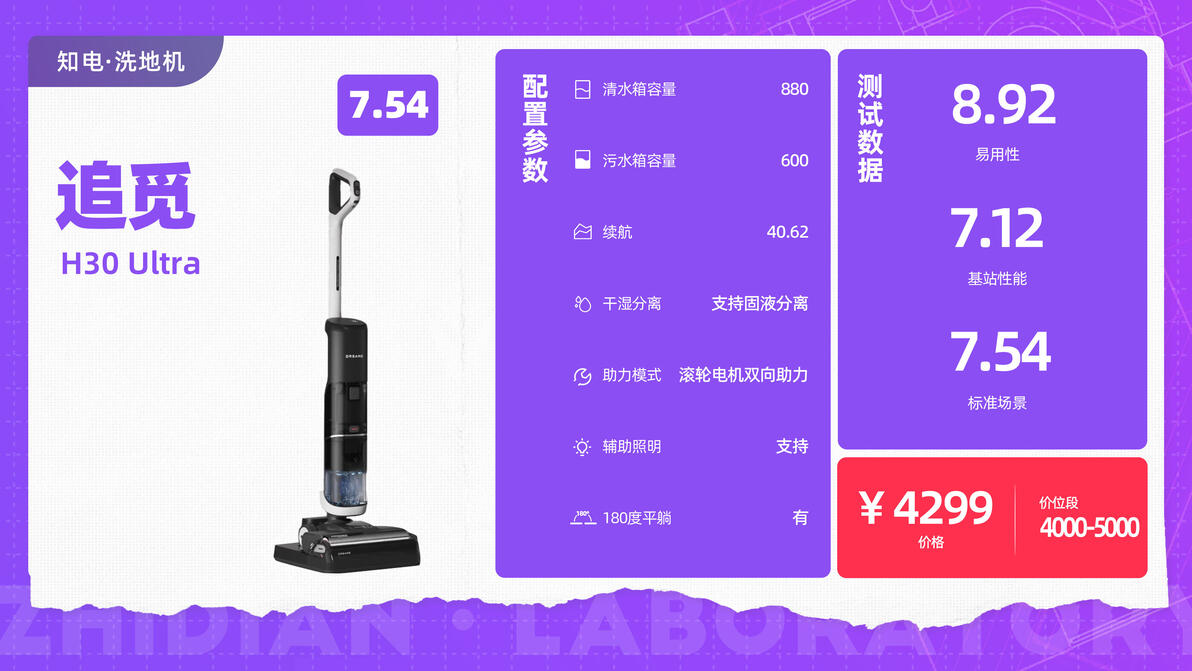追觅(dreame)H30 Ultra无线智能洗地机热水自清洁180°平躺热烘双助力吸尘吸拖扫一体机 【1台顶5台】H30 Mix ¥4299起 评分7.54分,排名第5。