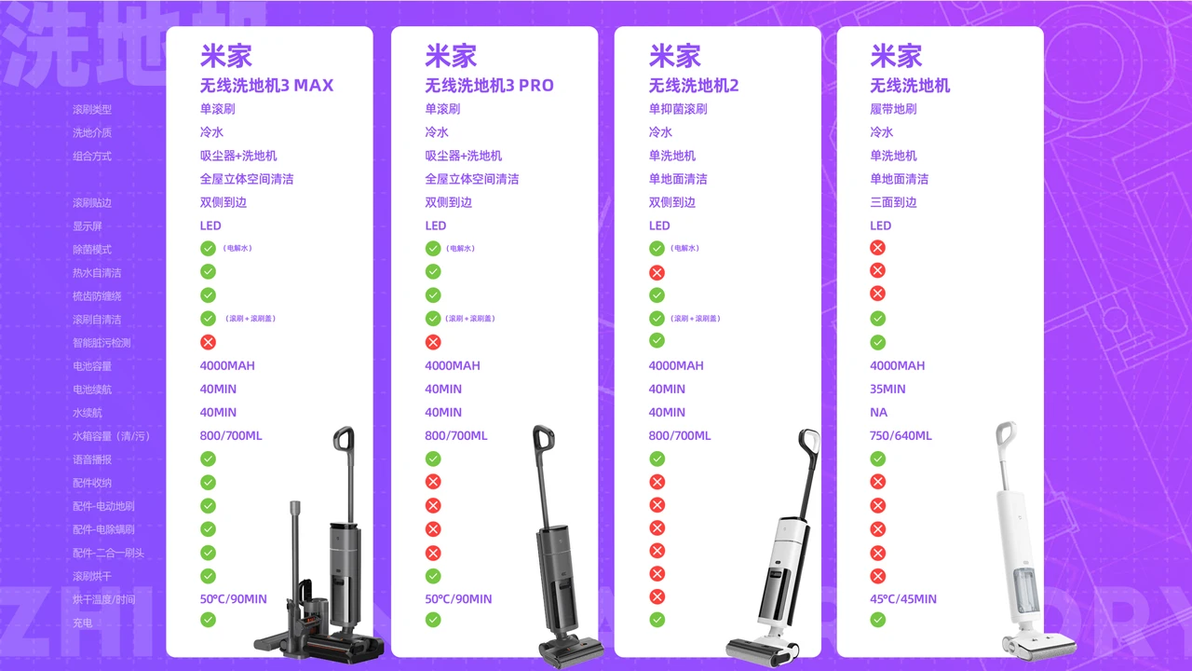 由于已经完成评测,并且评分在7分以上的产品,全部来自4个品牌,分别是米家、云鲸、追觅和添可,那么我们就按照品牌,来给大家逐一解读一下这些产品。