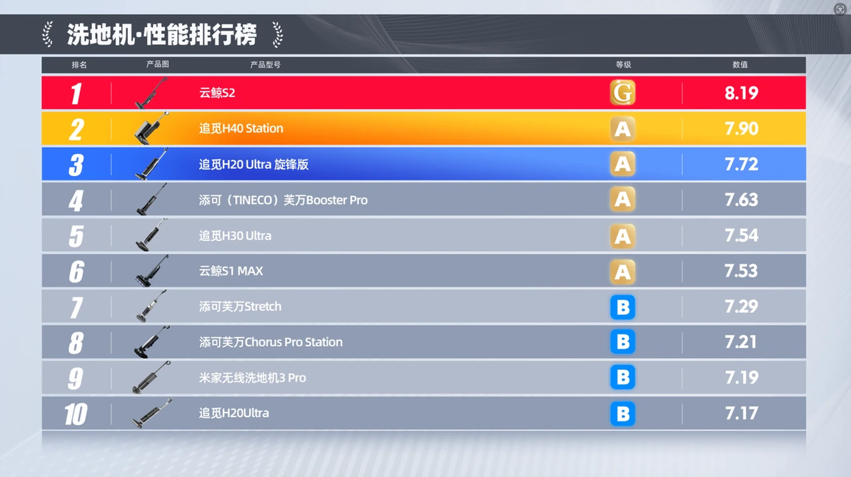 从排行榜大家可以发现,2024年的洗地机的性能差距,已经逐渐在拉开了。