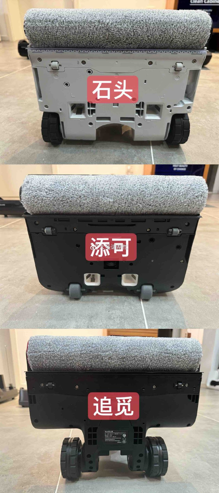 除了上文所述,各个品牌也在省力设计方面绞尽了脑汁。比如石头和添可都采用了水箱下置的布置方式;