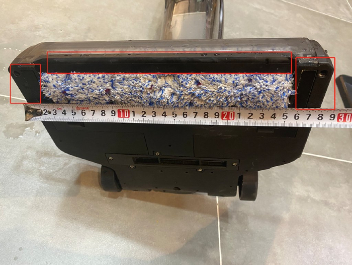 以上图某款洗地机为例,由于滚刷位置的原因,红框标识区域将成为清洁死角,后续只能自己手动二次清洁才行。因此为了减少死角,主要就是让滚刷尽量靠近边缘。