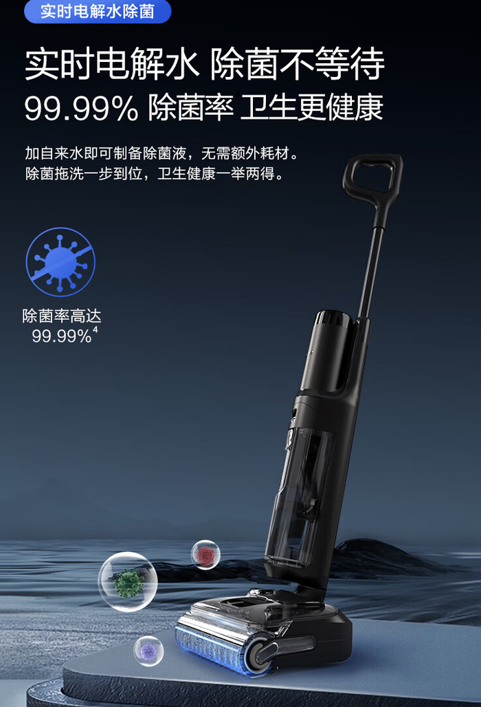 追觅和添可采用的则是电解水除菌方案,均为实时制备,即开即用无需等待;